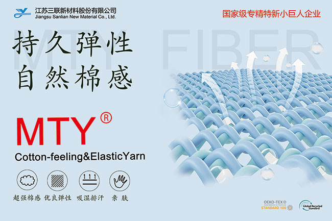综上三个开发方向,MTY棉弹丝广泛用于纬编,梭织运动休闲面料。“弹性”、“舒适”,MTY棉弹丝,给用户不一样的体验。