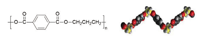 图1. PTT的化学结构(左)和立体结构(右)
