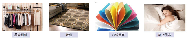 PTT具有优良的抗污性能,且抗静电性好,可用于地毯的生产制造中。同时,PTT纤维也是可用于制备非织造布的良好材料,还可应用于其他的领域,如床上用品、装饰物、汽车脚垫、织带等。目前,PTT纤维独特的性能及优点使其发展速度迅猛,发展前景十分良好。随着对PTT纤维加工与应用研究的不断深入,其应用领域将更加多元化。