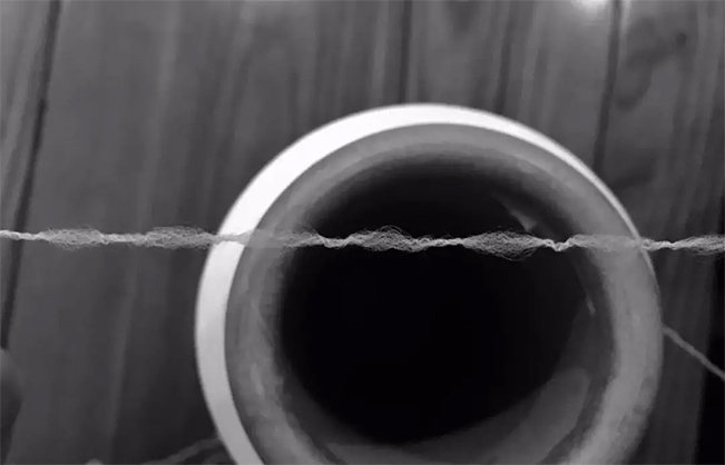 是DTY丝经网络喷嘴在压缩空气的作用下加工而成,它在改进DTY丝的极光效应和蜡状 (树脂 )感方面有较好的效果,并给DTY丝带来某些独特风格。